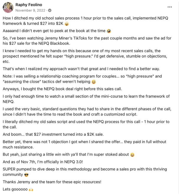 In the portal, you’ll find your 3-day crash course, email & script templates, foundational NEPQ training, and more.
